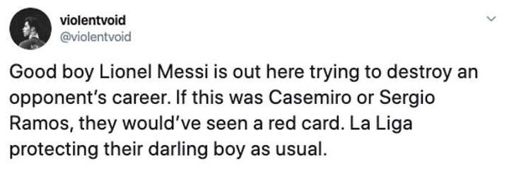 But some fans on social media even thought Messi was fortunate to escape a red card after a challenge on Real Sociedad's Diego Llorente in the first half.