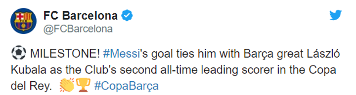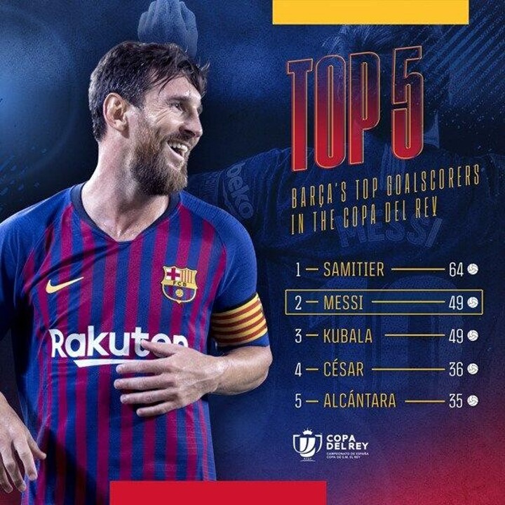 The Barcelona captain netted his team’s third goal on the night, his strike being his 49th in the Copa del Rey.