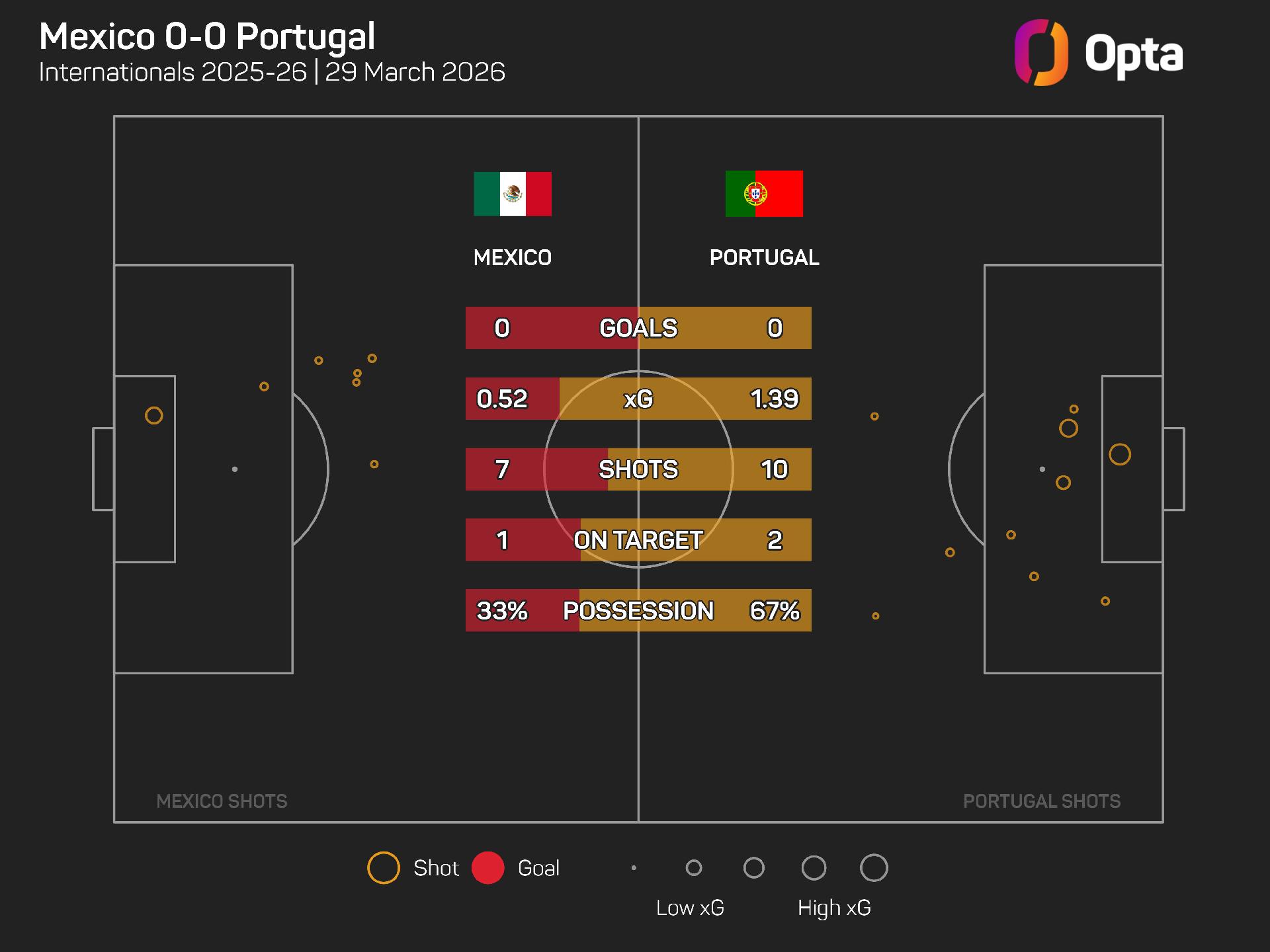 Mexico had seven shots, only hit the target once and put up an even worse xG figure, of 0.52.
