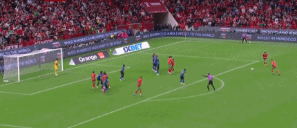 Seconds into the second half, he attacked a long delivery with a glancing header that forced Morocco’s first corner of the period, setting the tone for a renewed attacking push.