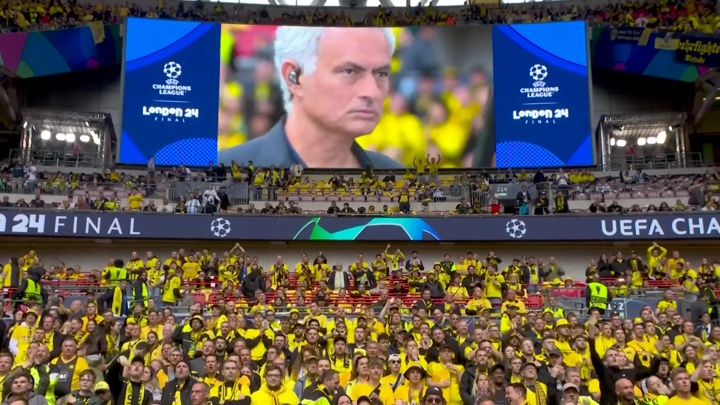 But before kick-off, fans from both sides were in top form as Mourinho and Klopp were both shown on the big screen.