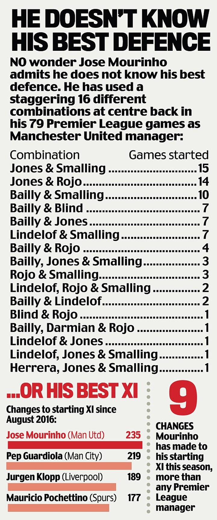 Defence remains the main issue, though, after Mourinho dropped Bailly and Victor Lindelof against Tottenham and gambled by playing midfielder Ander Herrera in a back three.