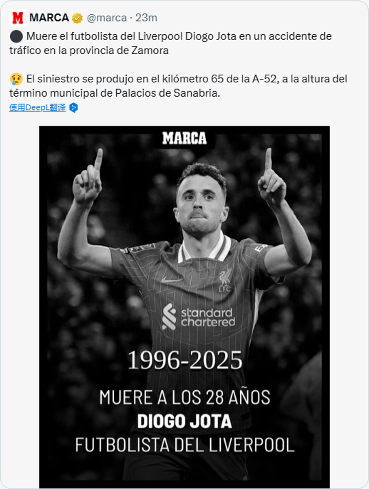 First reported by Spanish media MARCA: The Liverpool striker has passed away along with his brother André, a Penafiel player.