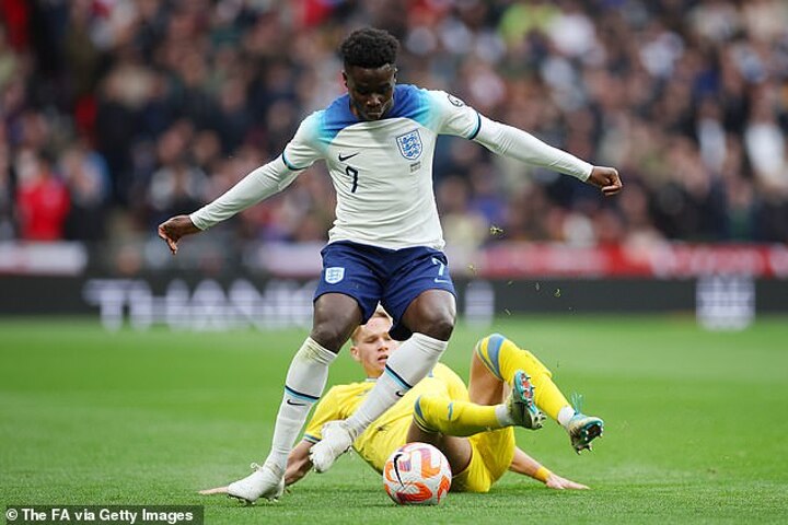 Fans online have heaped praise on England and Arsenal winger Bukayo Saka after his impressive performance against Ukraine.