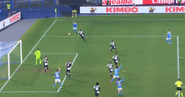 NAPOLI DOUBLE THEIR LEAD! It looks like the chance is gone when no one gets on the end of Milik's cross, but Callejon keeps it alive. Insigne is in a lot of space in the middle of the box and hits the shot on the volley. It hits the back of the net and he runs off down the track in celebration. 2-0 Napoli!