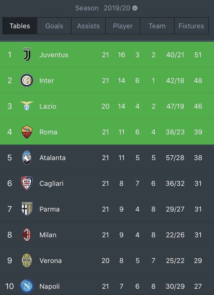 Serie A Standings