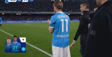 Subs: De Bruyne, Lukaku, Nikita Contini, Meret, Pasquale Mazzocchi, Anguissa, Sam Beukema, Miguel Gutiérrez, Giovane