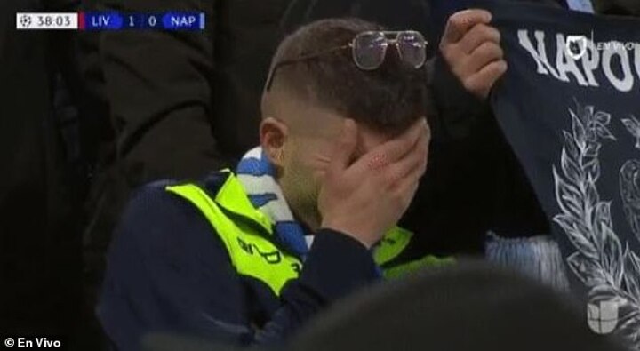 After Mohamed Salah put Liverpool in front at Anfield a Napoli supporter was seen crying in the away end despite it only being the 38th minute of the game.