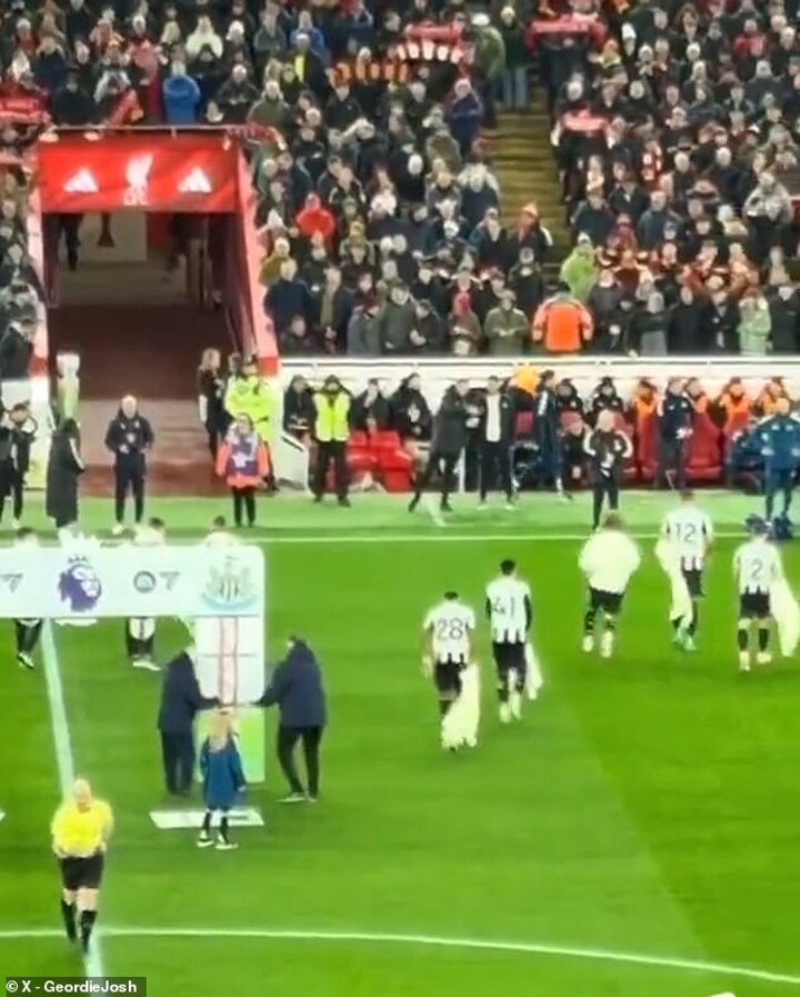 A member of Liverpool's club staff did seemingly encourage the young girl to go across to the Newcastle players yet she remained hesitant to do so.