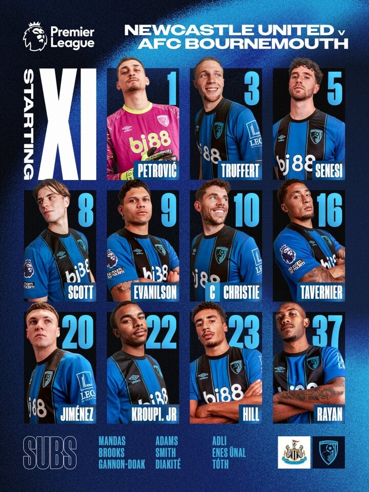 The line-ups of Newcastle vs Bournemouth have been announced.
