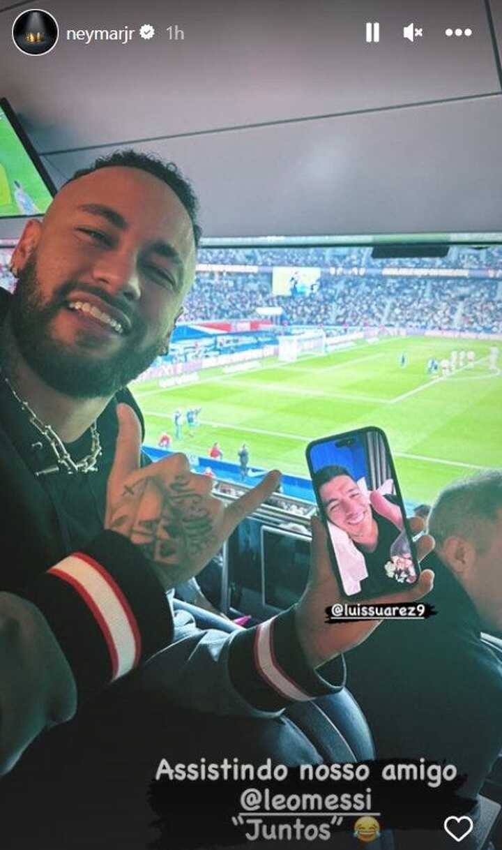 The Brazil star shared an image on his Instagram Story showing him and Suarez on the call, adding the caption: "Watching our friend [Leo Messi] together."