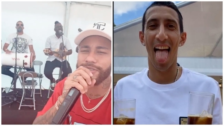 Angel Di Maria was one of the other players in attendance and the Brazilian sang to his Argentine teammate.