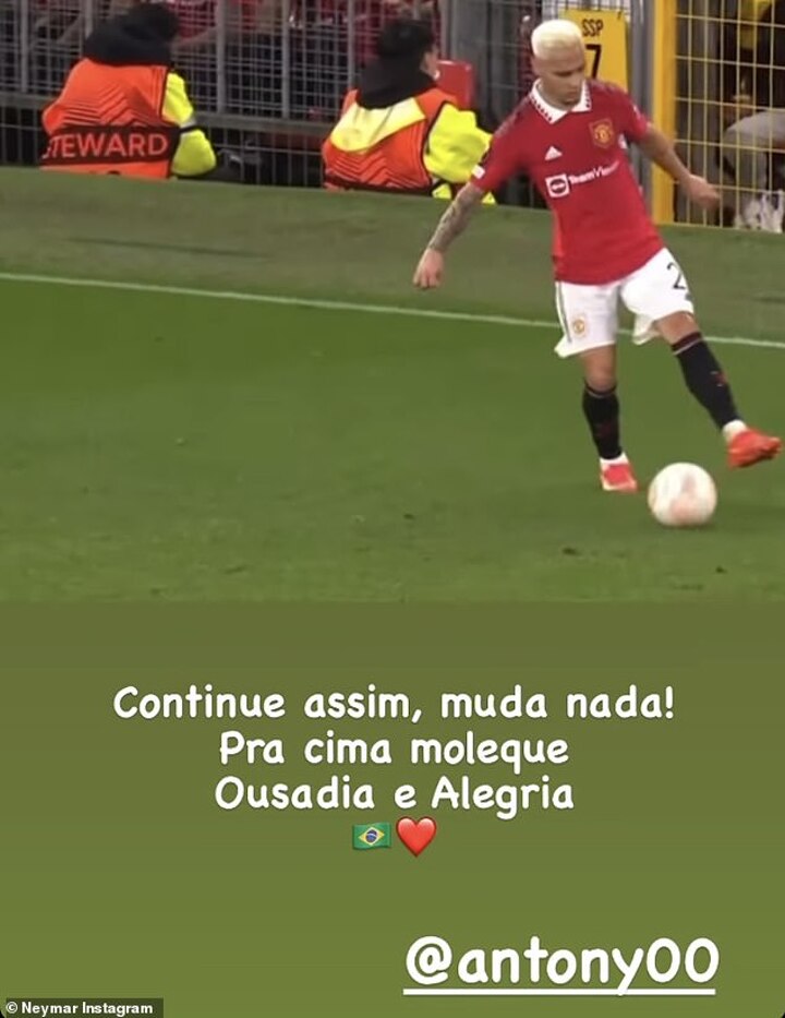 Neymar's caption alongside a video of Antony's carousel move was captioned: ‘Keep it up, don’t change anything! Go for it boy! Boldness and joy.’