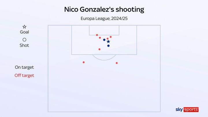 Gonzalez's numbers reflect his impact at the top end of the pitch. He ranked among the top 10 players in Portugal for possession won and passes completed in the final third. Despite playing so high up, his pass completion rate was still in excess of 90 per cent.