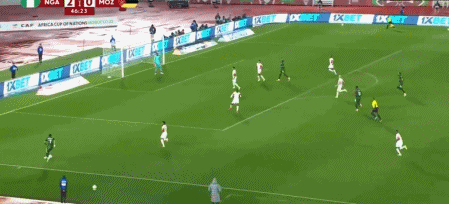Just five minutes later, the favourites doubled their advantage when Lookman’s cross was delicately helped on by Akor Adams, allowing Osimhen to tap into an empty net at the back post. The striker then flicked a header narrowly wide, Wilfred Ndidi shot off-target from distance, and a rare chance went begging at the other end when Faisal Bangal nodded wide from close range. That was the kind of opening Mozambique needed to make the most of to get back in the game, whereas their opponents could afford to see Adams arrow wide in the closing stages of the first half.