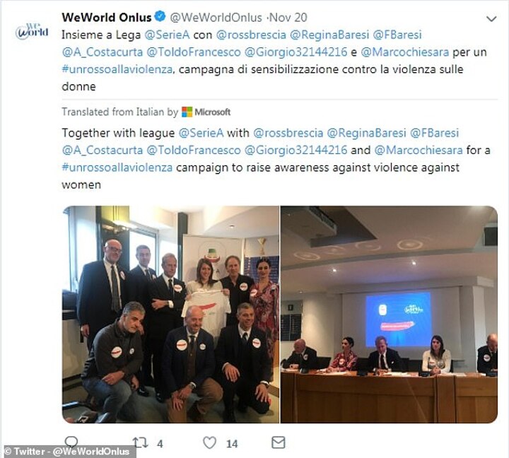 Earlier this week, the likes of former AC Milan defender Franco Baresi and ex-Italy goalkeeper Francesco Toldo were pictured on the WeWorld Onlus Twitter account supporting the campaign.