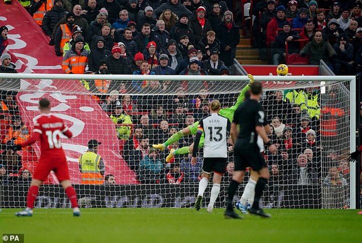 When Kelleher parried Joao Palhinha’s header straight to Tim Ream in the first half, Liverpool were fortunate that Ream was offside.
