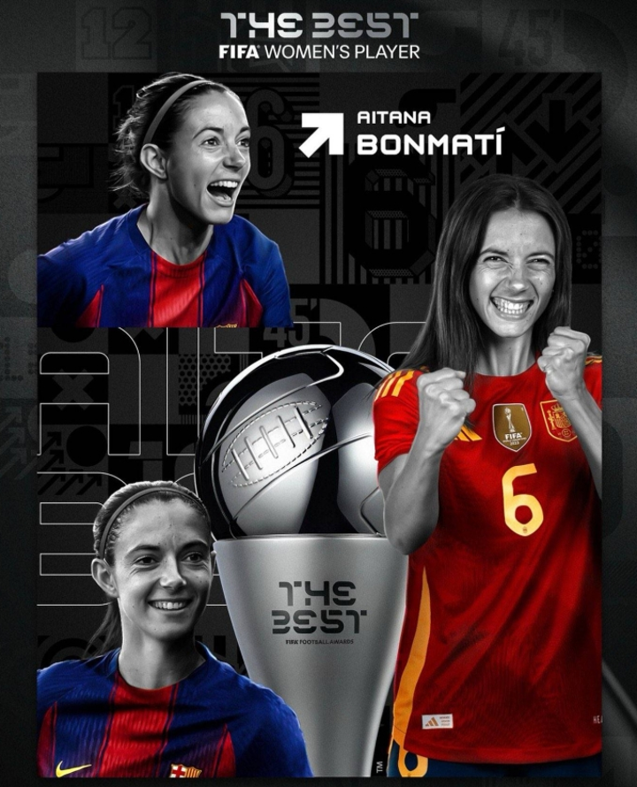 Aitana Bonmati has been voted The Best FIFA Women’s Player for a third year in succession.