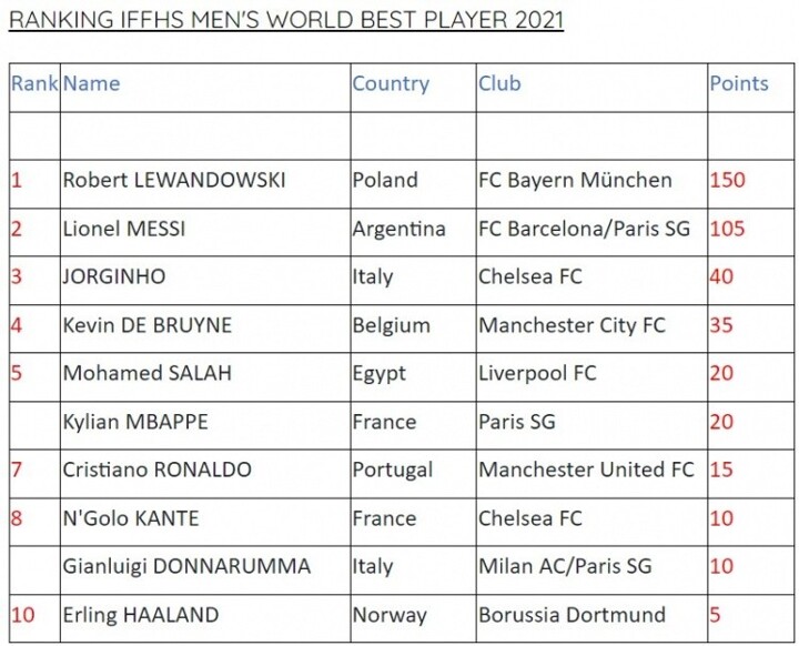 Lewandowski has been named IFFHS Best Player of the year for the 2nd timeRanking: Copyright Declaration