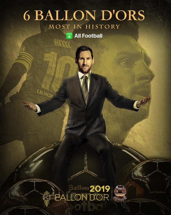 Lionel Messi becomes the first player in footballing history to win the Ballon d'Or 6 times (2009, 2010, 2011, 2012, 2015, 2019).