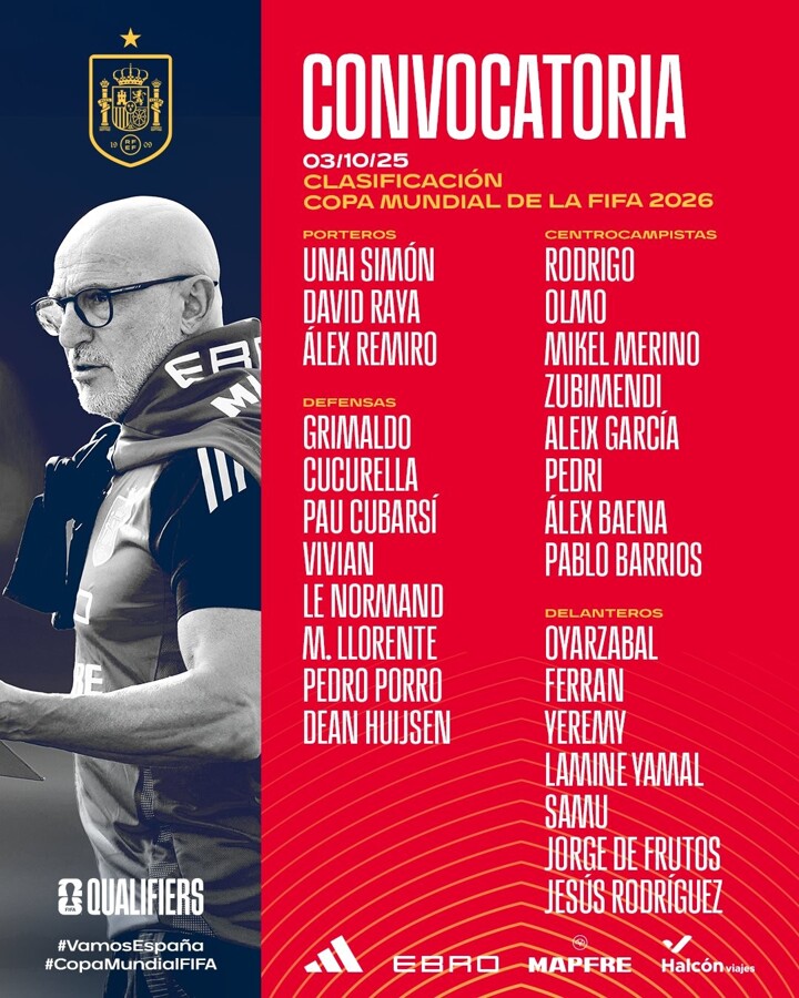 Spain announnce the squad list for International Duty, Lamine Yamal leads, Pedri and Zubimendi in. Copyright Declaration
