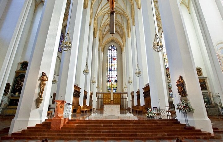 The cathedral was damaged during World War II, but has been restored It is famous for its bells and as the final resting place for the Dukes of Bavaria.
