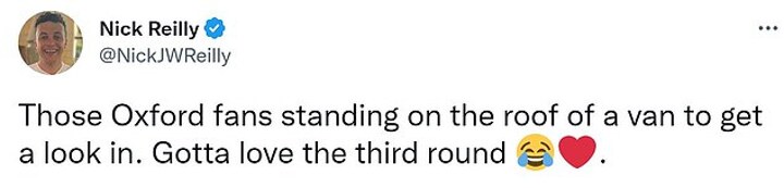 Fans were equally taken with the show of support on twitter, as several tweeted it was 'the magic of the FA Cup' and 'why we love the third round'.