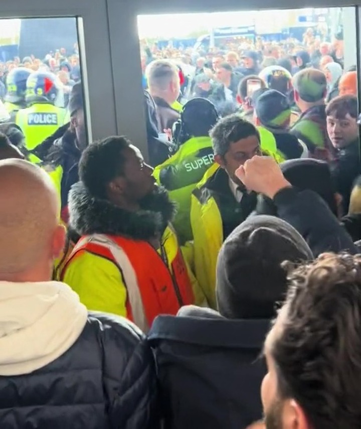 Meanwhile, another video emerged showing police clashing with home fans inside the ground as another group watches on.