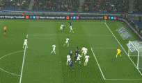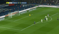 It's almost a carbon-copy of his previous attempt. Di Maria curls a cross in from the right flank and Cavani makes a move to find space six yards out. He meets the ball flush and sends it away from Costil into the top-right corner.