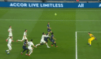 A header from Kimpembe travels to Mbappe and he rolls a pass back to Rico. The keeper goes to boot the ball down field on his left foot, but Pablo follows up to apply pressure. The PSG keeper boots it off the defender and the ball flies into the back of the net.