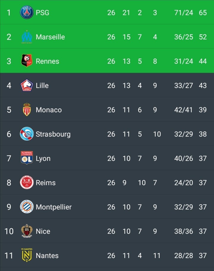 Ligue 1 Standing