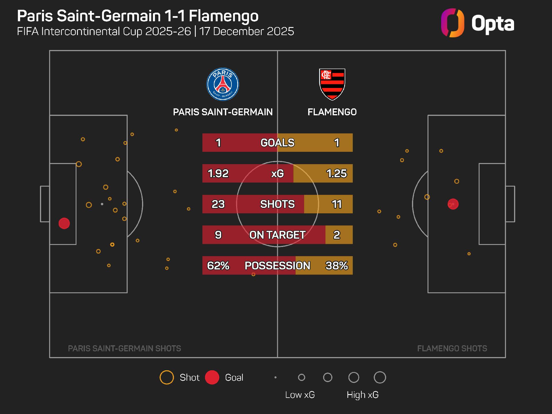 They had to stay patient for this success, firing off 23 shots to Flamengo's 11 and amassing 1.92 expected goals (xG) to their opponents' 1.25 (0.79 from Jorginho's penalty).