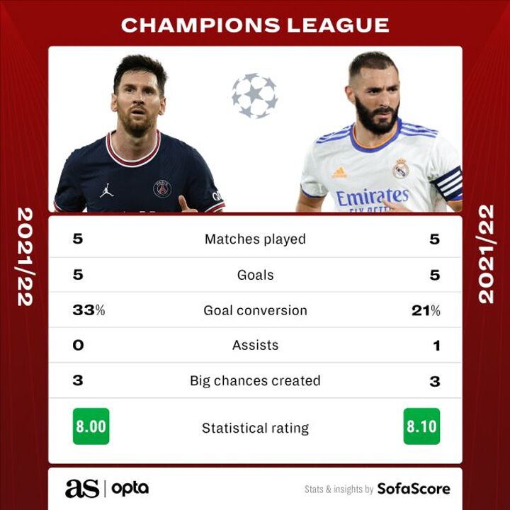 Messi and Benzema's 2021/22 Champions League records: