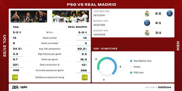 Here is the statistical lowdown on PSG vs Real Madrid: