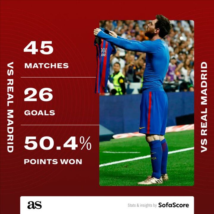 The Barcelona legend, who has scored seven times since joining PSG in the summer - two in Ligue 1 and five in the Champions League - has amassed 26 goals and 14 assists in his 45 competitive appearances against Madrid (all as a Barça player), but was unable to score or supply an assist in his last seven clashes with the 13-time European champions.
