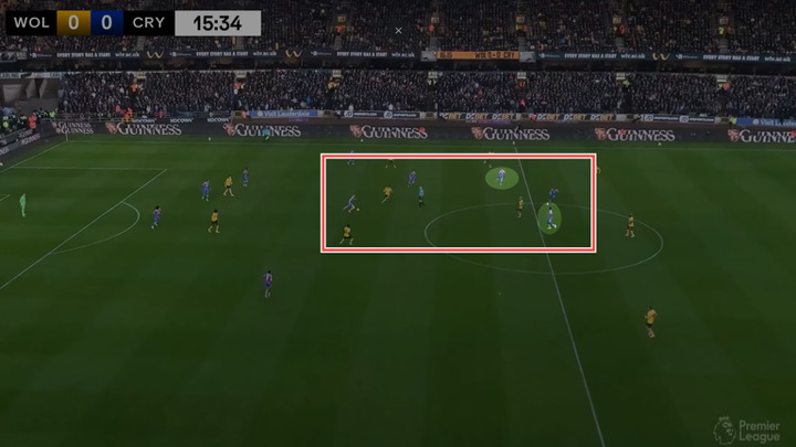The four in Palace's midfield are divided into two areas: the wing-backs and the two sitting midfielders.