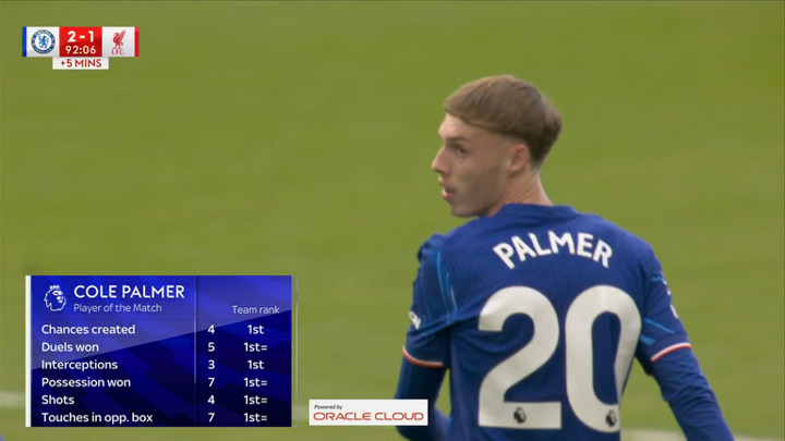 Palmer could already have had a goal by then, but was denied by the far post after beating Alisson from a tight angle in a showing in which the England midfielder looked back to his best.