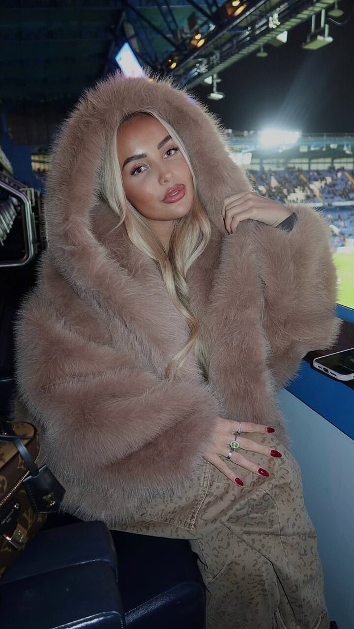 Holder posted a picture of herself wearing a fur coat, as well as a snap of her Chelsea star boyfriend controlling the ball during the first-half.