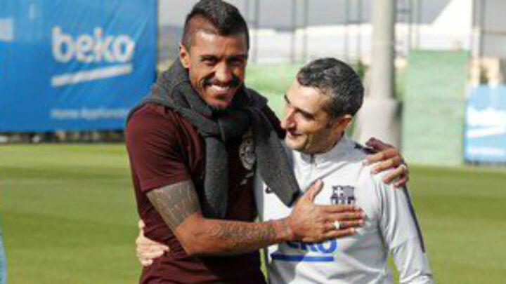 Brazilian midfielder Paulinho surprised his ex-teammates and Ernesto Valverde, when he visited Barcelona's training centre on Wednesday.