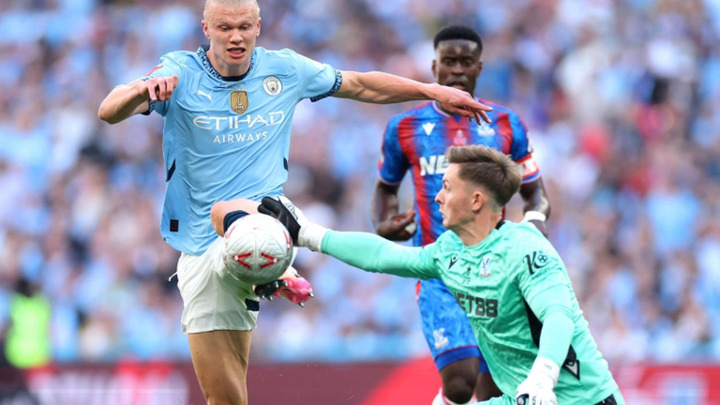 Incident 3: Dean Henderson starred for Crystal Palace in their FA Cup final victory over Manchester City - but should the goalkeeper have been sent off? On 24 minutes, Henderson handled the ball outside his box, palming it away from Erling Haaland as the Man City forward tried to race onto a pass.