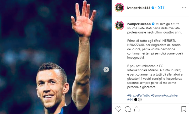 After joining Bayern, Perisic writes farewell words to Inter and his Inter fans via Instagram