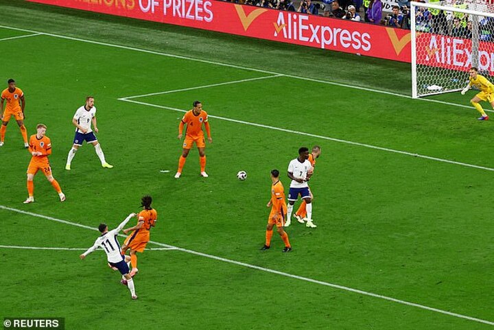 Harry Kane levelled the score for England in the 18th minute after drawing a foul from Dumfries in the penalty box, expertly converting the spot-kick into Bart Verbruggen's right-hand corner.