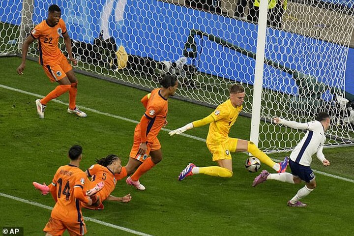 England star Phil Foden came agonisingly close to taking the lead against the Netherlands before Dutch defender Denzel Dumfries cleared his effort off the line.