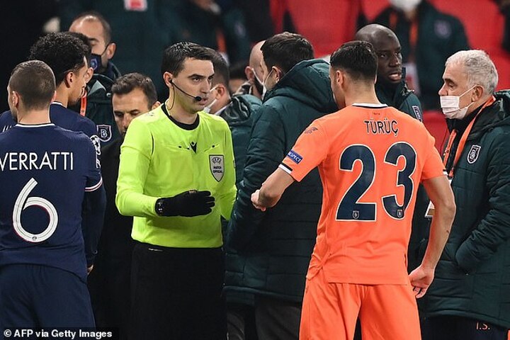 PSG’s players followed their powerful show of solidarity the night before by joining Istanbul’s in wearing ‘No To Racism’ t-shirts and taking the knee ahead of Wednesday’s conclusion while a banner in support of Webo was also displayed in the stadium.
