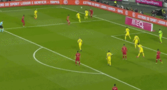 CLOSE TO AN OPENER! Carvalho thought he had scored! He was unmarked at the back post and stooped low to head the cross back across goal and into the net, but he was a fraction offside and Clement Turpin makes the correct decision to rule it out. It's still 0-0 at the Estadio da Luz.