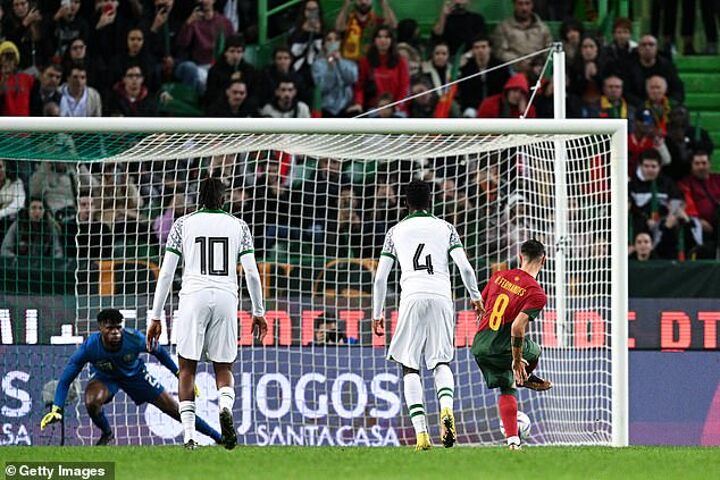 Coach Fernando Santos made six substitutions in the second half and Ramos scored Portugal's third immediately after Portugal goalkeeper saved a penalty from Emmanuel Dennis after the VAR spotted Dalot's foul in the 81st minute.