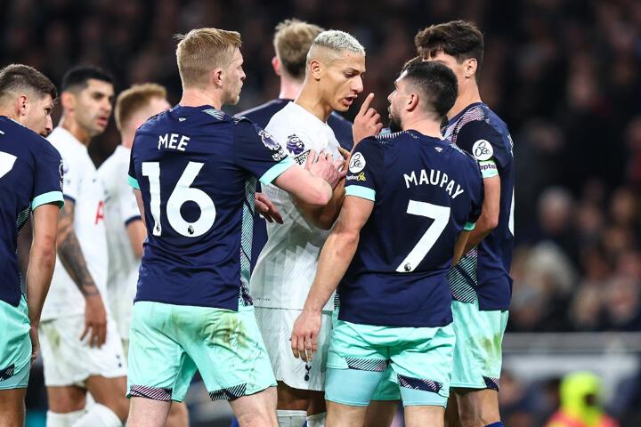 The Frenchman clashed with James Maddison by copying the Tottenham star’s celebration, with Richarlison also getting involved.