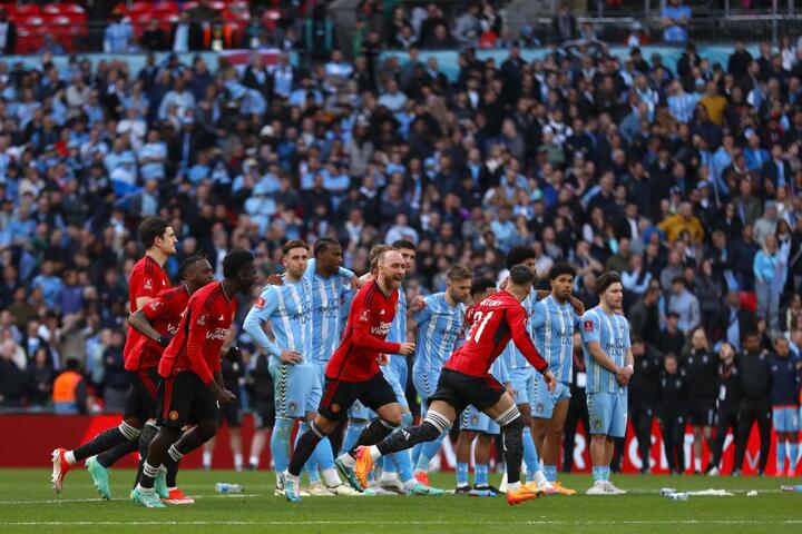 United were leading 3-0 before Coventry scored three of their own to send the game to extra time.