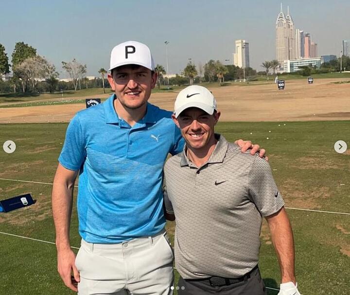 Harry Maguire spent time on the golf course with Jordan Pickford, while holidaying with their respective girlfriends Fern Hawkin and Megan Davison.