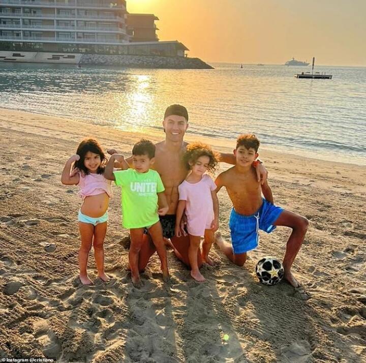 Cristiano later shared some more wholesome snaps as he posed with his kids Cristiano Jr, 11, Alana Martina and Eva Maria, both four, and Mateo, also four, on the beach during sunset.